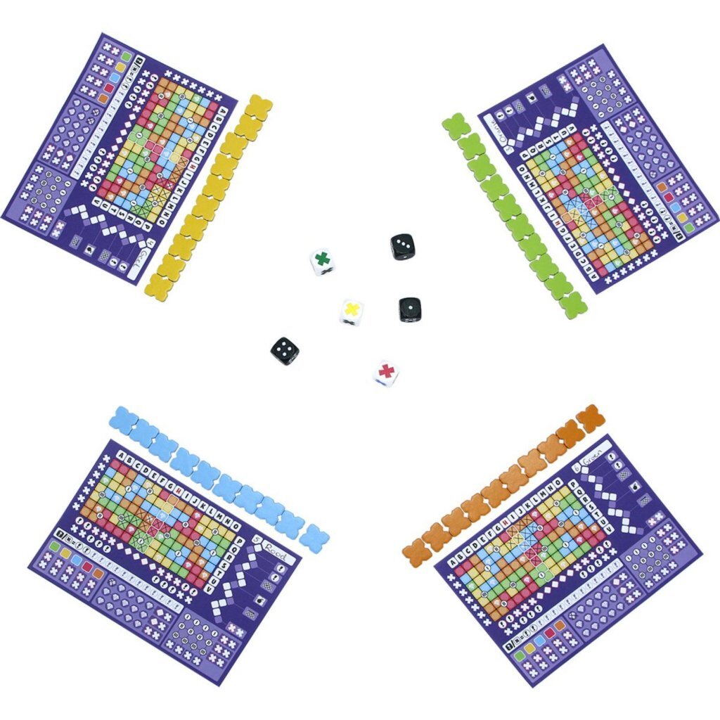 Heb jij keer op keer Keer op Keer gespeeld en snak je naar meer? Speel dan Keer op Keer 3: net zo toegankelijk als voorgaande edities, dus net zoveel dobbelplezier. Leuk voor iedereen die van vlotte dobbelspellen houdt!Om de beurt dobbelen spelers met de 6 dobbelstenen en kiezen ze daar een combinatie van 1 kleur- en 1 cijferdobbelsteen van. Op basis daarvan kun je velden op je speelvel aankruisen. Let op, je combinatie moet wel aan eerdere kruisjes grenzen. De resterende spelers mogen nu uit de overige 4 dobbelstenen ook een combinatie maken. Probeer zo je speelveld te vullen. Vul je een rij of kolom, dan kun je daar vaak een kruis voor inkleuren om een X-fiche om te draaien. Deze geven je extra bonussen en heb je als eerste 10 X-fiches omgedraaid, dan win je!