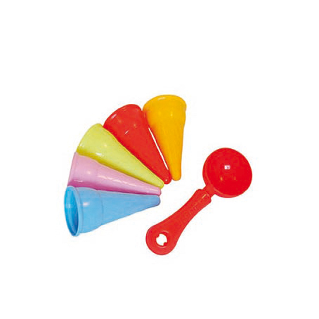 Adriatic zandvormen ijscohoorntjesSchep bolletjes zand op en zet ze daarna op de ijscohoorntjes. Je kunt hiermee
