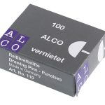 Punaise messing, kop 9 mm. Verpakt per 100 stuks in een doosje.