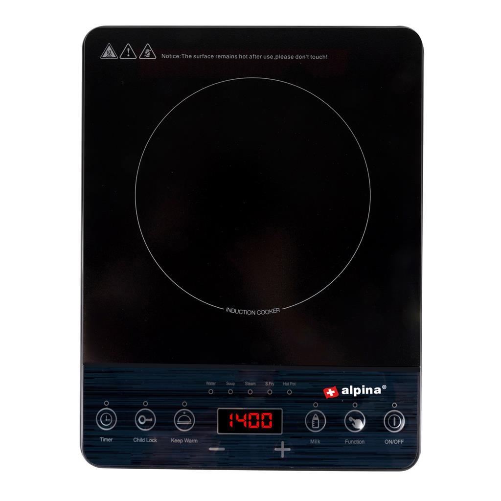 Alpina 1-pits inductiekookplaat 4-cijferige display 10 niveaus Temperatuur tussen de 60 en 220 graden Diameter pit: