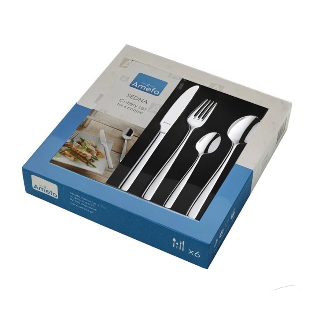 Amefa Sedna bestekset Afwerking: hoogglans Roestvrij staal: 18/0 6 eetlepels 6 messen 6 vorken 6 theelepels