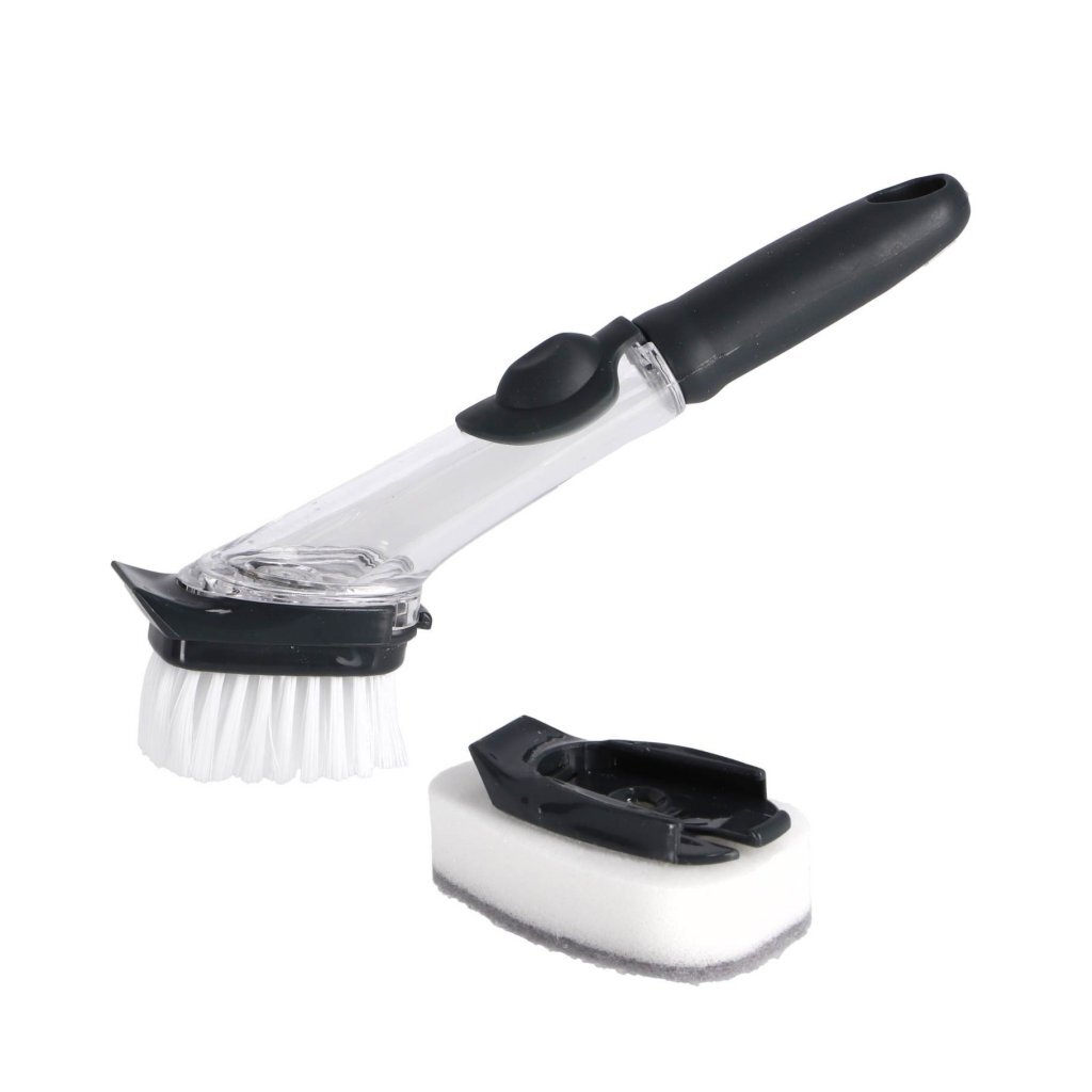 Aqua Laser afwasborstel met zeepdispenser en schuurspons, kleur: zwart/wit
