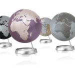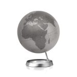 Design globe met een aluminium voet en een doorsnee van 30cm. De hoogte is 37cm. Wereldkaart in metallic silver.