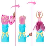 Barbie Reveal Flower Supprise Pink Tulip Elke geparfumeerde Barbie pop zit verpakt in een bos bloemen, zodat het uitpakken extra leuk wordt. Pluk de blaadjes, vul de meegeleverde gieter, giet het water in het gat aan de zijkant van de vaas en kijk hoe de pop tot bloei komt in een magische onthulling! Open daarna de verrassingszakjes voor het konijntje en modeaccessoires. Kinderen kunnen de onthulling herhalen door de Barbie pop weer in het boeket te doen en op de knop te drukken voor eindeloos speelplezier! Poppen kunnen niet los staan. Per stuk verkrijgbaar en niet overal leverbaar. Kleuren en versieringen kunnen variëren. Geschikt voor kinderen vanaf 3 jaar.