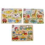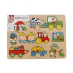 Plaats de houten vormpjes op de juiste plaats in de puzzel. Elk puzzelstukje is vrolijk gekleurd en heeft een plastic knopje, waarmee je hem makkelijk kunt plaatsen en weer kunt pakken. Hierdoor is de puzzel ook geschikt voor de allerkleinsten. Verkrijgbaar in verschillende uitvoeringen. Vooraf is helaas niet te bepalen welke uitvoering je ontvangt.