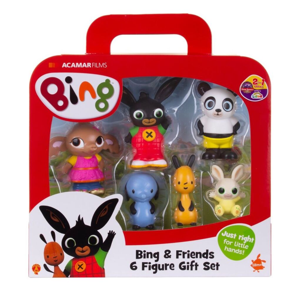 Kijk jij ook altijd naar de avonturen van Bing en zijn vriendjes? Speel nu de filmpjes na met deze leuke set. Neem Bing, Flop, Sula, Pando, Charlie en Amma overal mee naartoe in de handige koffer die erbij zit. Geschikt voor kinderen vanaf 18 maanden.