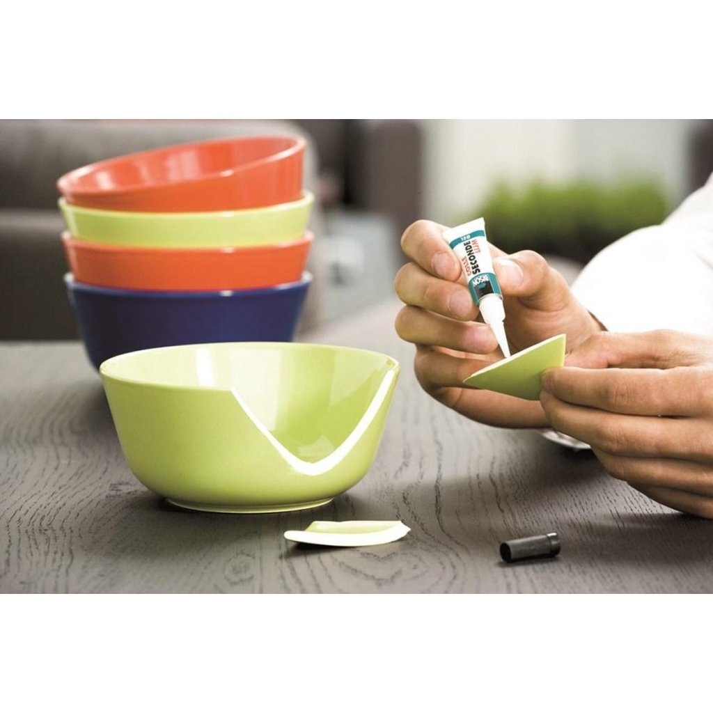 • Lijmt diverse materialen zoals aardewerk, porselein, kurk, hout, karton, metaal, rubber en vele kunststoffen