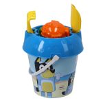 Bluey emmerset Emmer 18 cm groot, met afbeelding van Bluey en haar familie op het strand