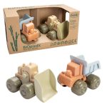 Stoere voertuigset van Dantoy, met een bulldozer en een vrachtwagen in ingetogen, natuurlijke kleuren. Ze passen perfect in kleine handen, met een ergonomische afwerking en er kan zowel binnen als buiten mee gespeeld worden. Na het ploegen door de zandbak of plassen water zijn ze gemakkelijk schoon te maken in de vaatwasmachine. Deze BIO bulldozer en vrachtwagen worden in Denemarken gemaakt van bioplastic, een duurzame grondstof gemaakt van 90 procent suikerriet, waardoor ze gecertificeerd zijn om het Nordic Swan Ecolabel te dragen. Geschikt voor kinderen vanaf 2 jaar.