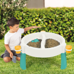 In het midden van de tafel zit een scheiding, zodat je kan kiezen welke kant je met zand of water vult. Dankzij de meegeleverde accessoires kan je kindje zich helemaal uitleven. Zo zit er o.a. een waterval onderdeel bij, bootjes, en verschillende vormpjes om met het zand te spelen.