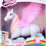 Wat een beauty! Deze witte eenhoorn uit de productlijn Dream Horse. Sla de sierlijke vleugels uit en kijk hoe de lange glanzende manen wapperen in de wind als ze vliegt. Goedkeurend knikt ze haar paardenhoofd op en neer; voelt zich zo vrij als een vogel… oh ehm eenhoorn natuurlijk. Oja, als je de QR-code op de verpakking scant kun je een leuke Dream Horse kleurplaat en vrolijke poster van de ondeugende Toi-Toys eenhoorn downloaden!