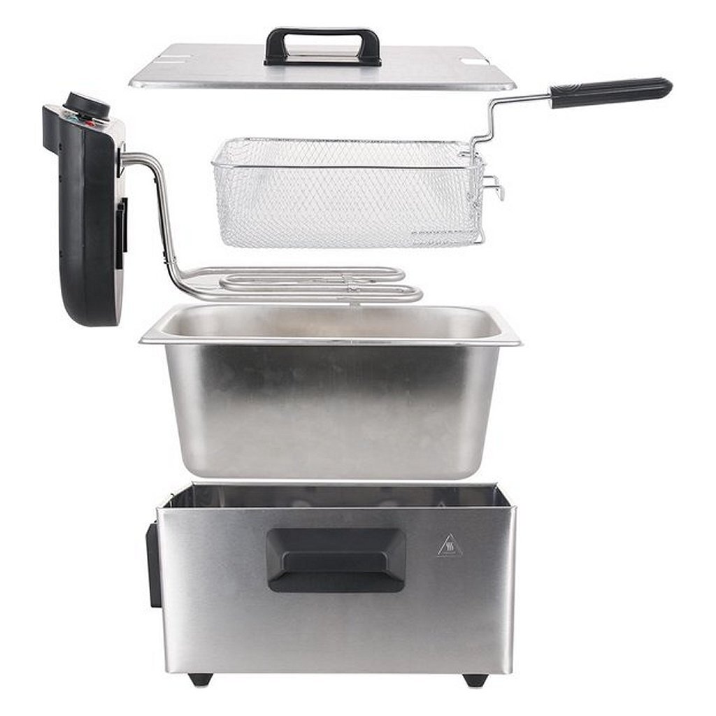 Emerio DF-120482 friteuse Inhoud: 3 liter Vermogen: 2000 Watt Materiaal/kleur: rvs/zwart Anti-geur Indicatielampje 1 frituurmand Regelbare