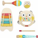 Fisher Price houten muzieksetPeuters kunnen hun eigen jamsessies organiseren met deze muzikale cadeauset van Fisher-Price. Deze