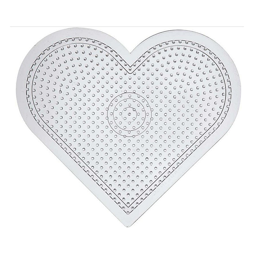 Maxi strijkkralen kun je in bijna elk gewenst patroon leggen en dan door middel van strijkpapier en een strijkijzer samensmelten. Maar daarvoor heb je natuurlijk wel een grondplaat nodig. Transparante hartvormige grondplaat voor je maxi beads.