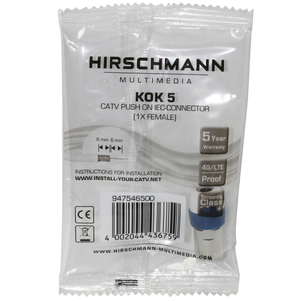 Hirschmann Contra Recht Kok5 Rechte IEC connector met een zeer hoge afschermingsgraad. Opvolger van de KOK