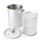 Handige rvs asperge-pastapan van Imperial Kitchen. Uniek aan deze aspergekoker is dat hij naast het verticaal koken van asperges, witloof of andere groenten zich ook perfect leent voor de bereiding van pasta’s.