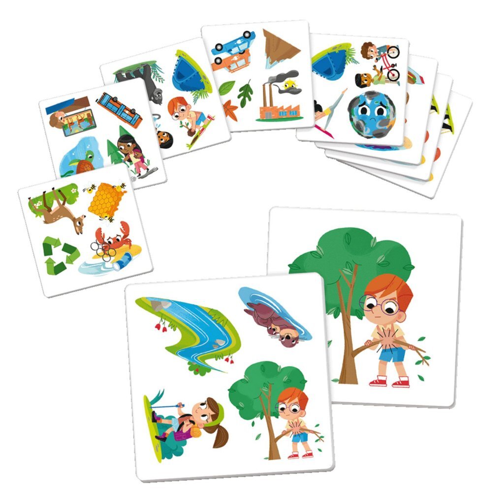 Een Jumbo kaartspel waarmee we kinderen leren bepaalde kleine gewoontes te herkennen die een negatief effect op het milieu kunnen hebbebn, en wat ze kunnen doen om die te vermijden. 4 verschillende manieren om te spelen.