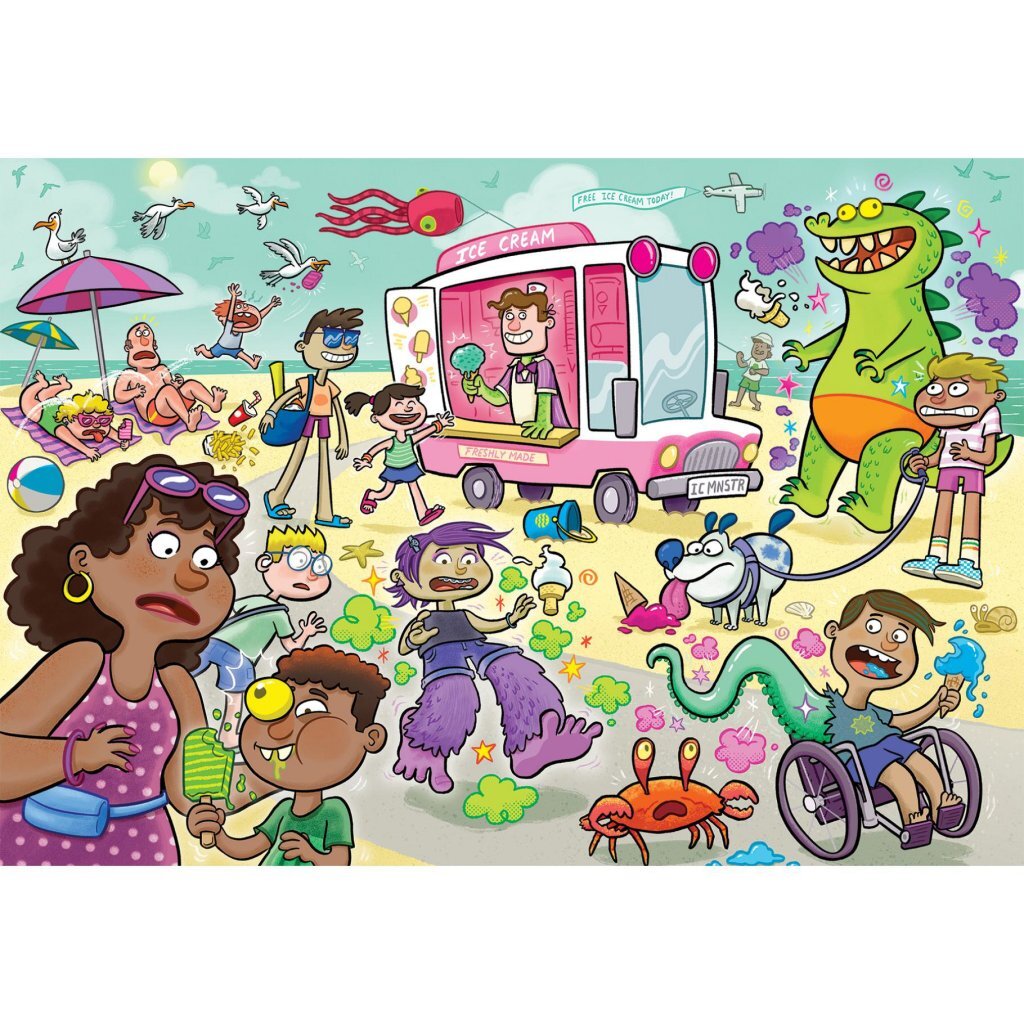 Het is een zinderende zomerdag op het strand en overal bruist het van de pret. Vooral rondom de ijskraam! Wie lust er nou geen heerlijk verkoelend ijsje op zon warme dag? Zeker als het ook nog eens gratis is. Maar wacht eens even… zie ik nou spoken of is er hier iets geks aan de hand? Bevat 240 stukjes. Geschikt voor kinderen vanaf 8 jaar.