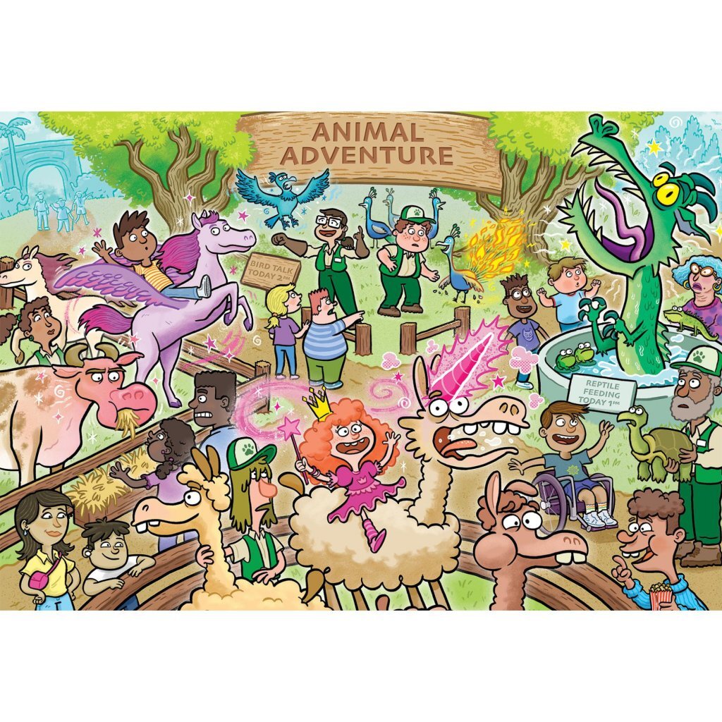 De Animal Adventure-dierentuin stroomt vol met gezinnen voor een vrolijk dagje met hun favoriete dierenvrienden. Eén prinsesje heeft zich speciaal mooi aangekleed, en het lijkt erop dat haar toverstokje hier wel heel goed werkt! Bevat 240 stukjes. Geschikt voor kinderen vanaf 8 jaar.