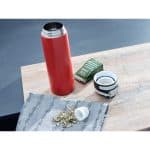 Als je op zoek bent naar een lekvrije thermobeker die je veilig in je zak kunt meenemen, dan is de Flip isoleerbeker van Leifheit de juiste keuze.Omdat deze verschillende veiligheidsfuncties heeft die voorkomen dat de inhoud lekt: het deksel is voorzien van een sluiting die 100% lekvrij is.Het slot voorkomt dat het deksel van de isolerende beker vanzelf opengaat.Hij kan dus gemakkelijk overal mee naartoe worden genomen.De drukknop is ook bijzonder praktisch voor onderweg.Hierdoor is het mogelijk om de beker met één hand te openen – en zonder hem neer te hoeven leggen.Het filterelement in het deksel voorkomt dat kruiden, fruit en dergelijke het drinken verstoren.Het filter kan van het deksel worden losgeschroefd en gemakkelijk grondig worden gereinigd.Uiteraard is de beker niet alleen geschikt voor koffie-to-go en andere warme dranken, maar ook voor coole dingen.Dankzij de dubbelwandige isolatie van roestvrij staal houdt het koude dranken tot 18 uur aangenaam koel en warme dranken tot6 uur warm.