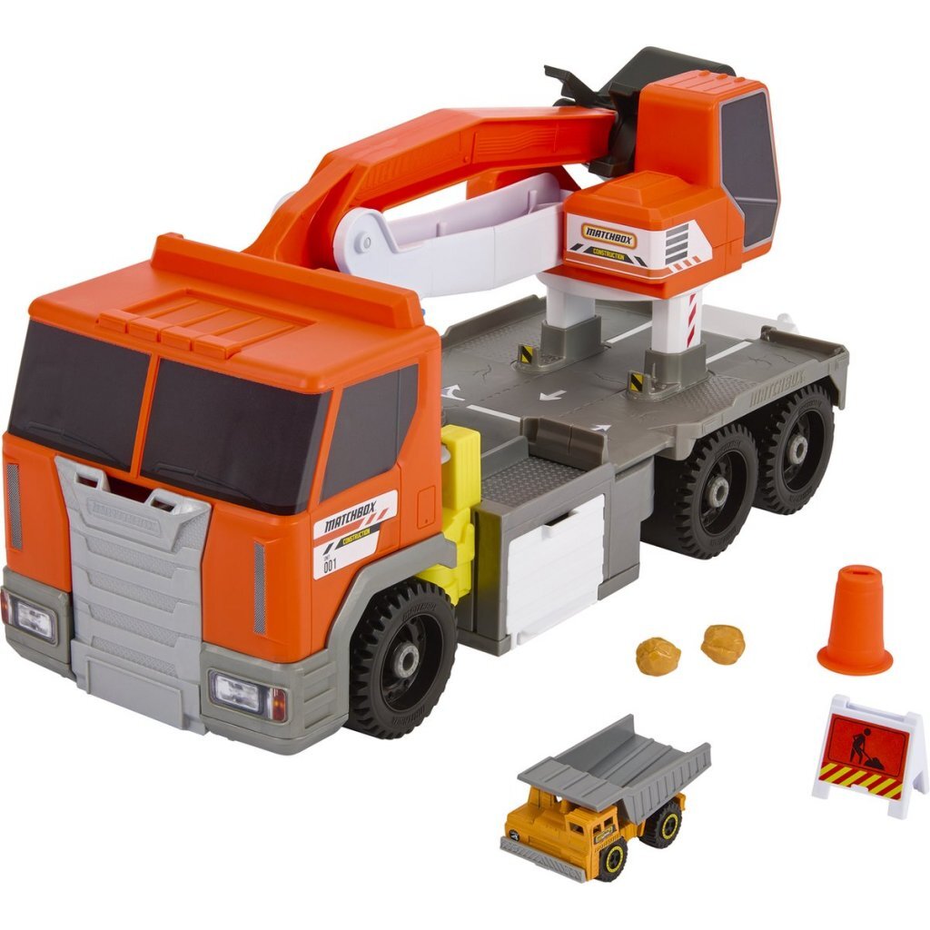 Matchbox Action Drivers bouwvrachtwagen met kiepwagen en graafmachine. Geschikt voor kinderen vanaf 3 jaar.