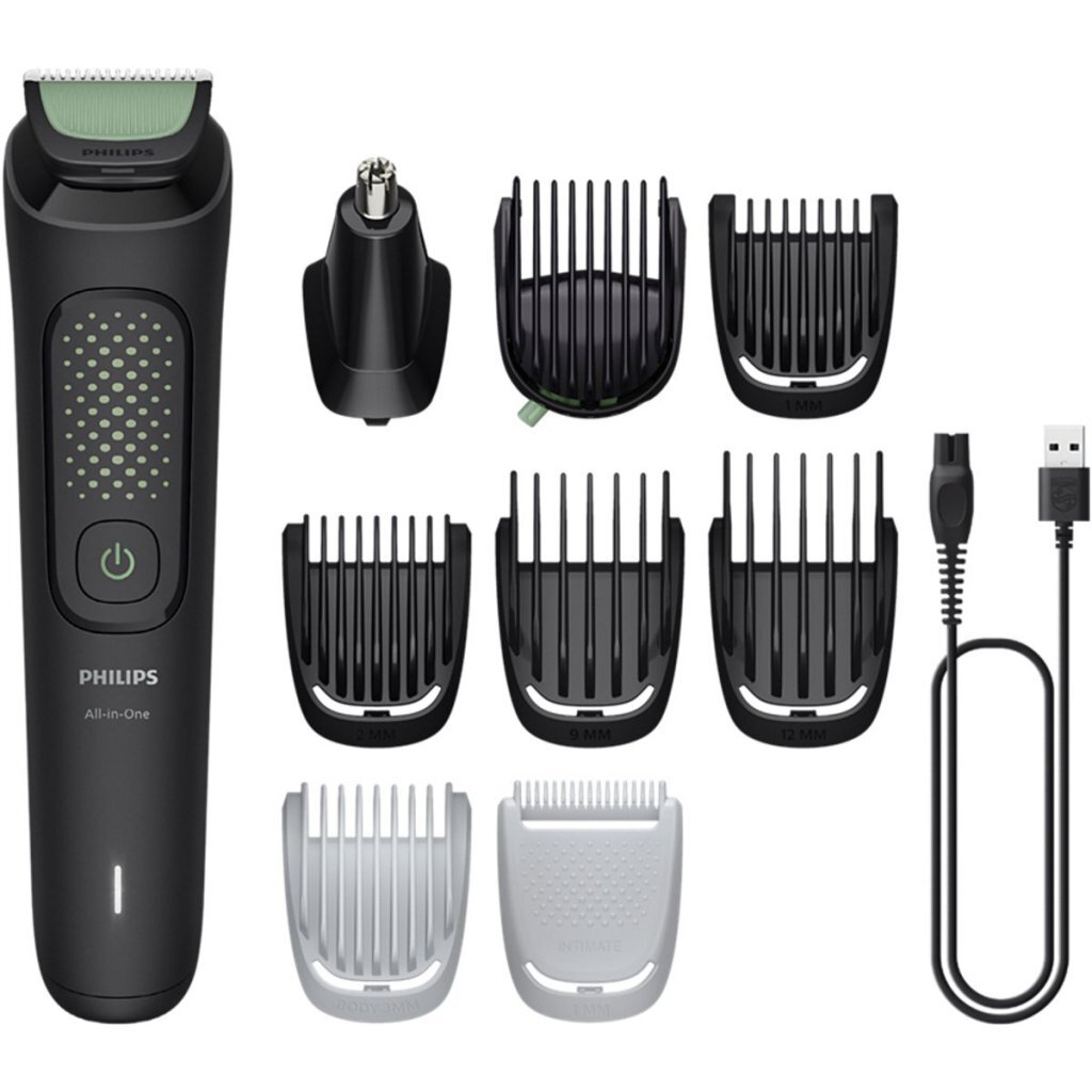 Philips MG3945/15 Series 3000 MultigroomOntworpen voor veelzijdigheid en efficiëntie. Met 9 opzetstukken, zelfslijpende stalen mesjes voor