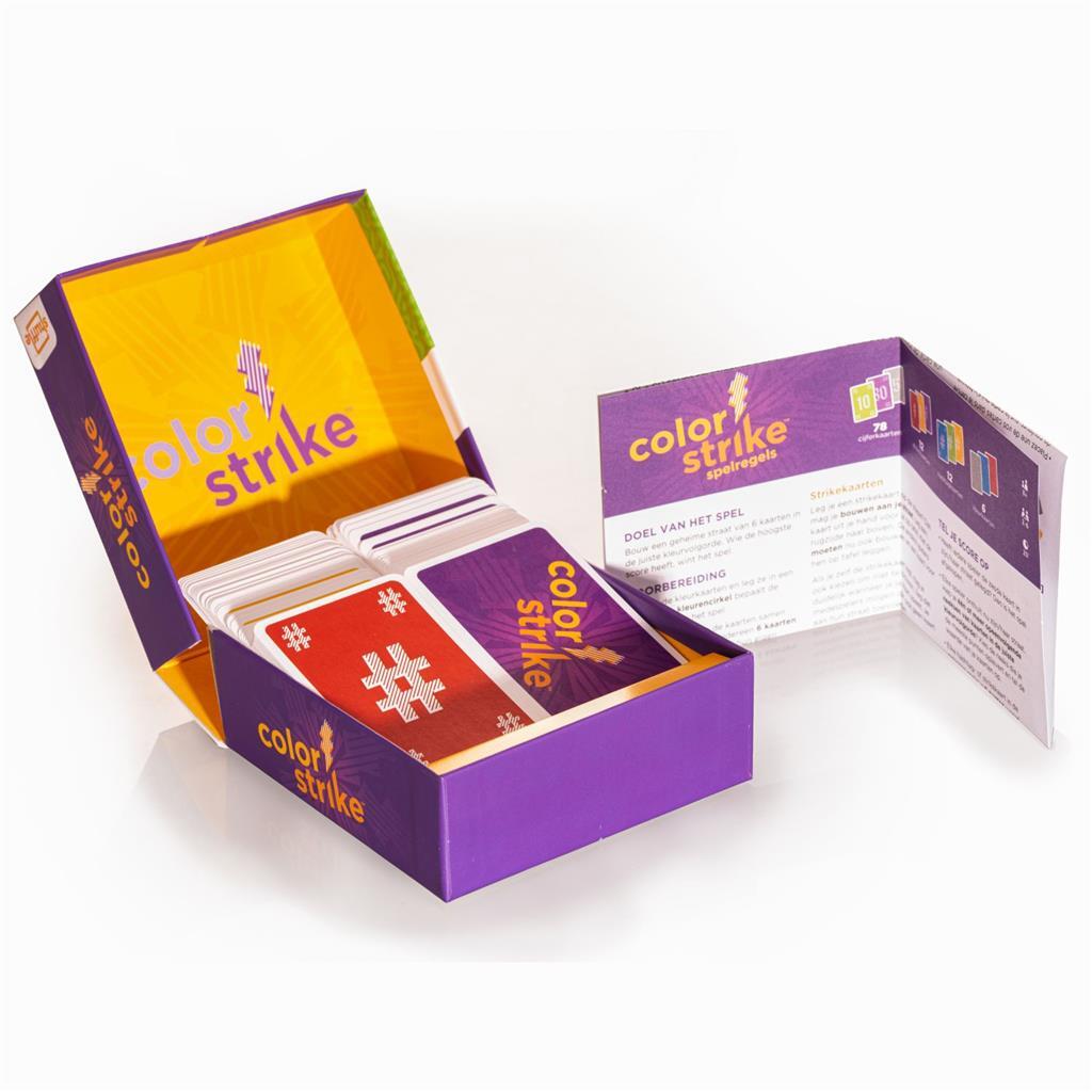 Goede kaarten steel je, slechte kaarten geef je als de bliksem weg. En kleur bekennen, dat doe je nooit. Met de hoogste score in je straat ben jij de koning of koningin van Color Strike! Inhoud: 110 kaarten, spelregels. Geschikt voor 2 tot 6 spelers vanaf 8 jaar.