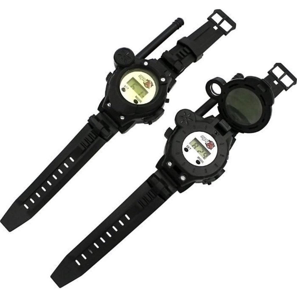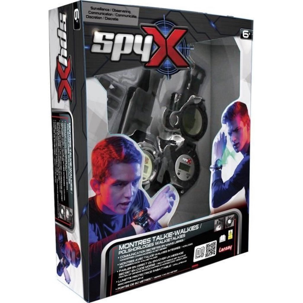 Word de beste spion dankzij je Spy X-accessoires! Met je set van 2 walkietalkiehorloges communiceer je met je geheimagentvrienden tot een afstand van 60 meter en wissel je topgeheime informatie uit! U kunt profiteren van de 8 functies: horloge, walkietalkie, vergrootglas, veiligheidsbril, minispiegel, capsules voor geheime berichten, LED-lamp en morsecode. Geschikt voor kinderen vanaf 6 jaar.