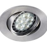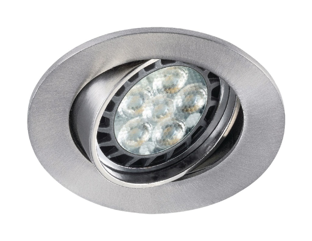 Geborsteld aluminium armatuur met vervangbare Sylvania LED-lamp. Lamp informatie: 6.5W / 360LM / Dimbaar / Stralingshoek 40 ° / 3000K. Armatuur is IP23 – Klasse 2.