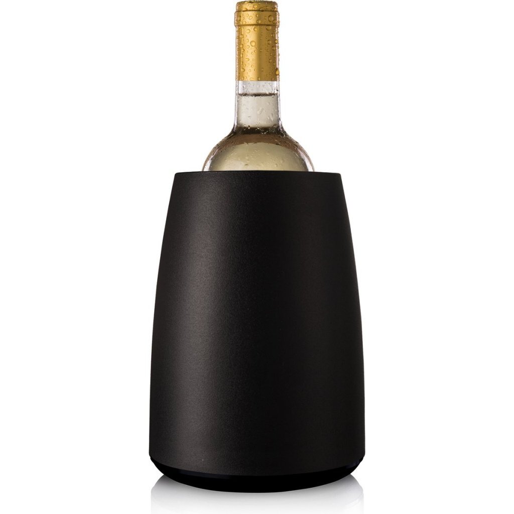 De Vacuvin wijnkoelerkoelt je favoriete wijn binnen 15 minuten en houdt de fles koud tot de laatste druppel. Dewijnkoeler bevat actieve koeling technologie die de wijnfles tot wel 90 minuten op de perfecte temperatuur houdt. Bewaar de sleeve in de vriezer voor minstens 6 uur voor optimaal gebruik. Kleur: zwart. Geschikt voor 0,7-1 liter flessen.